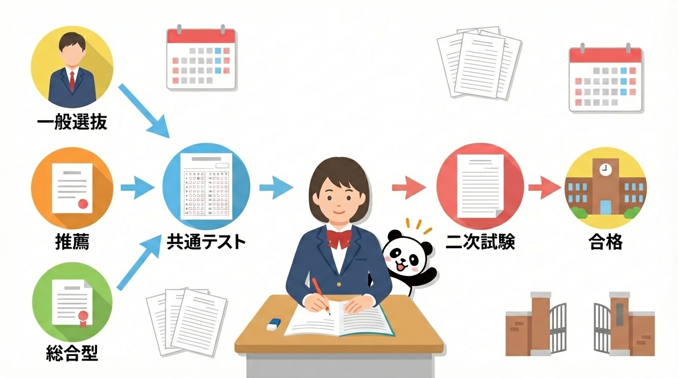 この記事では、大学受験の仕組みをわかりやすく整理しつつ、「自分は何を・いつ・どの順番で準備すればいいか」が見えるようにまとめます。