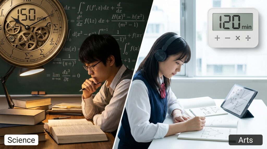 本番で自分の持っている実力を120%出し切るためには、理系と文系それぞれの試験の特性に合わせた「時間配分の戦略」が絶対に欠かせません。