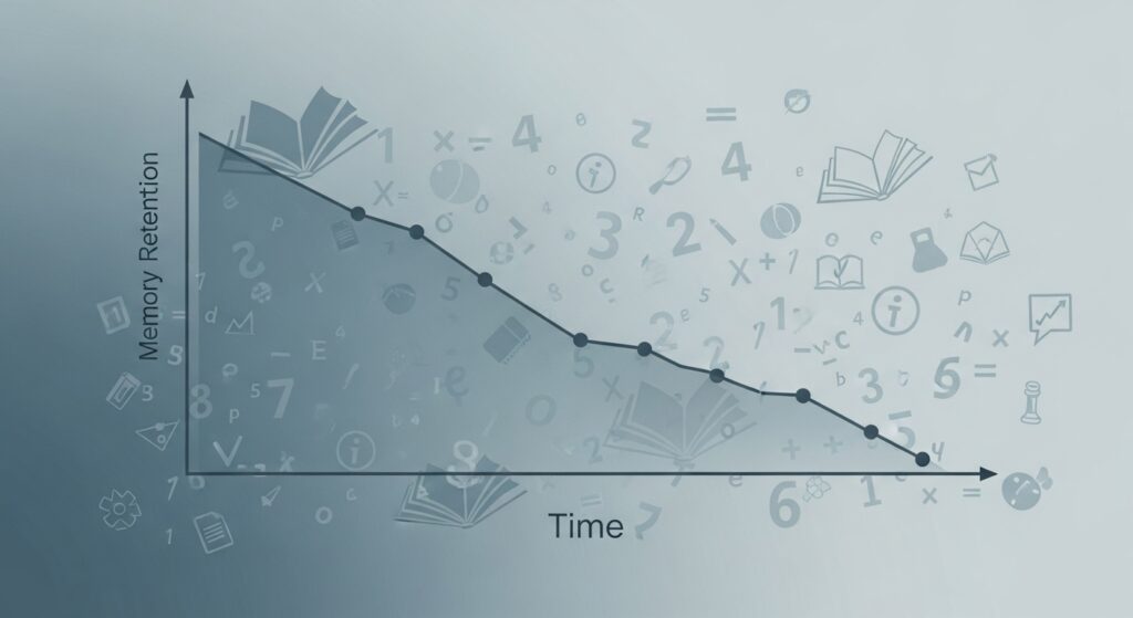 この曲線が示すのは、学習直後には高い記憶保持率を示すものの、その後、驚くほどの速さで記憶が低下していくという事実です。