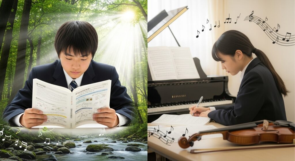 そのため、塾の予習や過去問を解くときなど、高い集中力と深い思考が必要な場面では、音楽を完全に止めて無音に近い状態で取り組むことが、パフォーマンスの維持に繋がります。