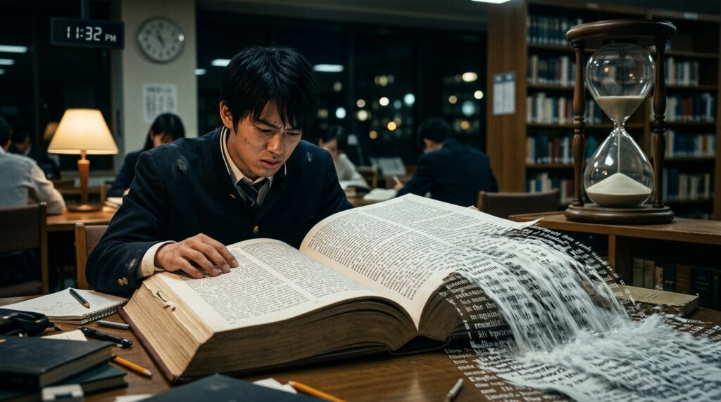 さらに、試験全体を通じた「時間的制約による心理的圧迫」も、受験生のパフォーマンスを大きく下げる要因になります。